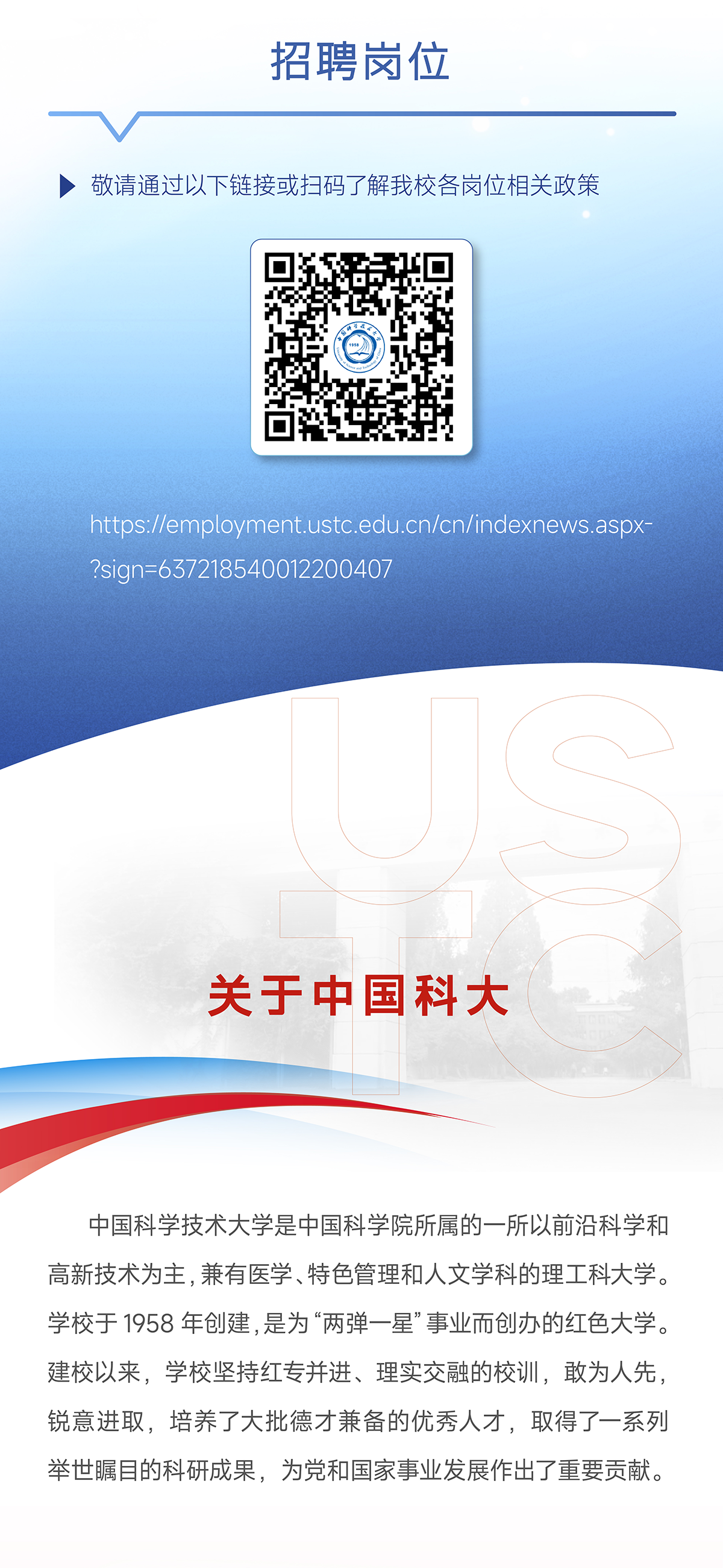 中国科大诚聘特任副研究员(特任高级工程师)暨博士后